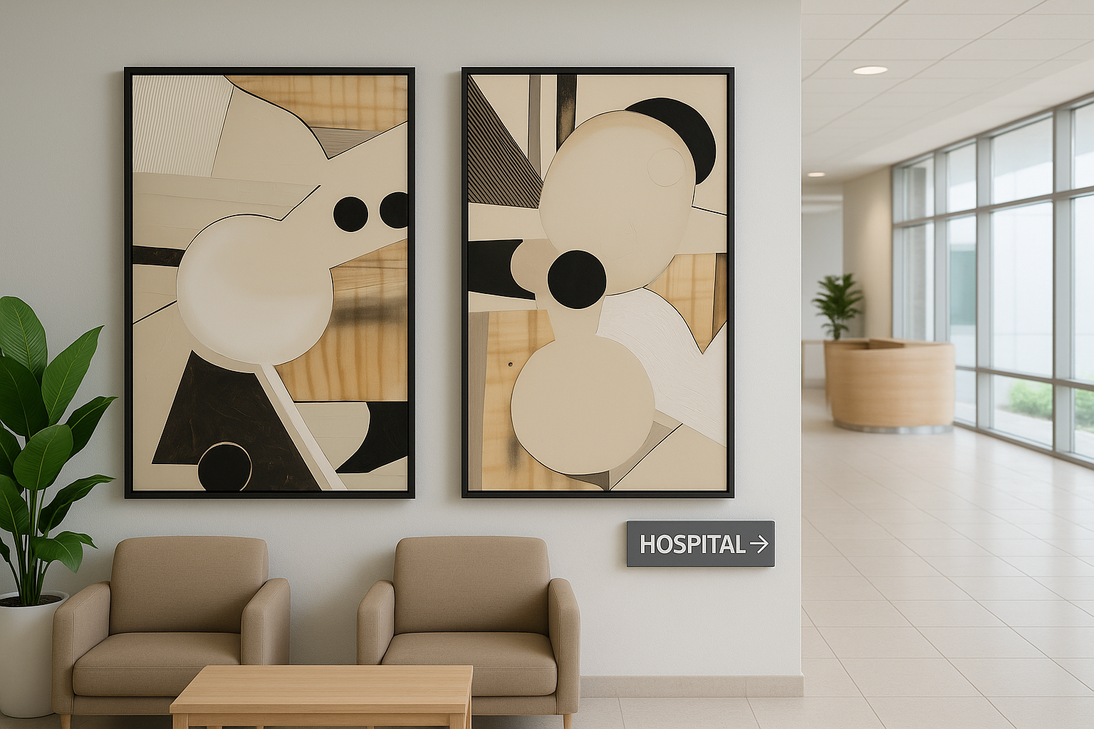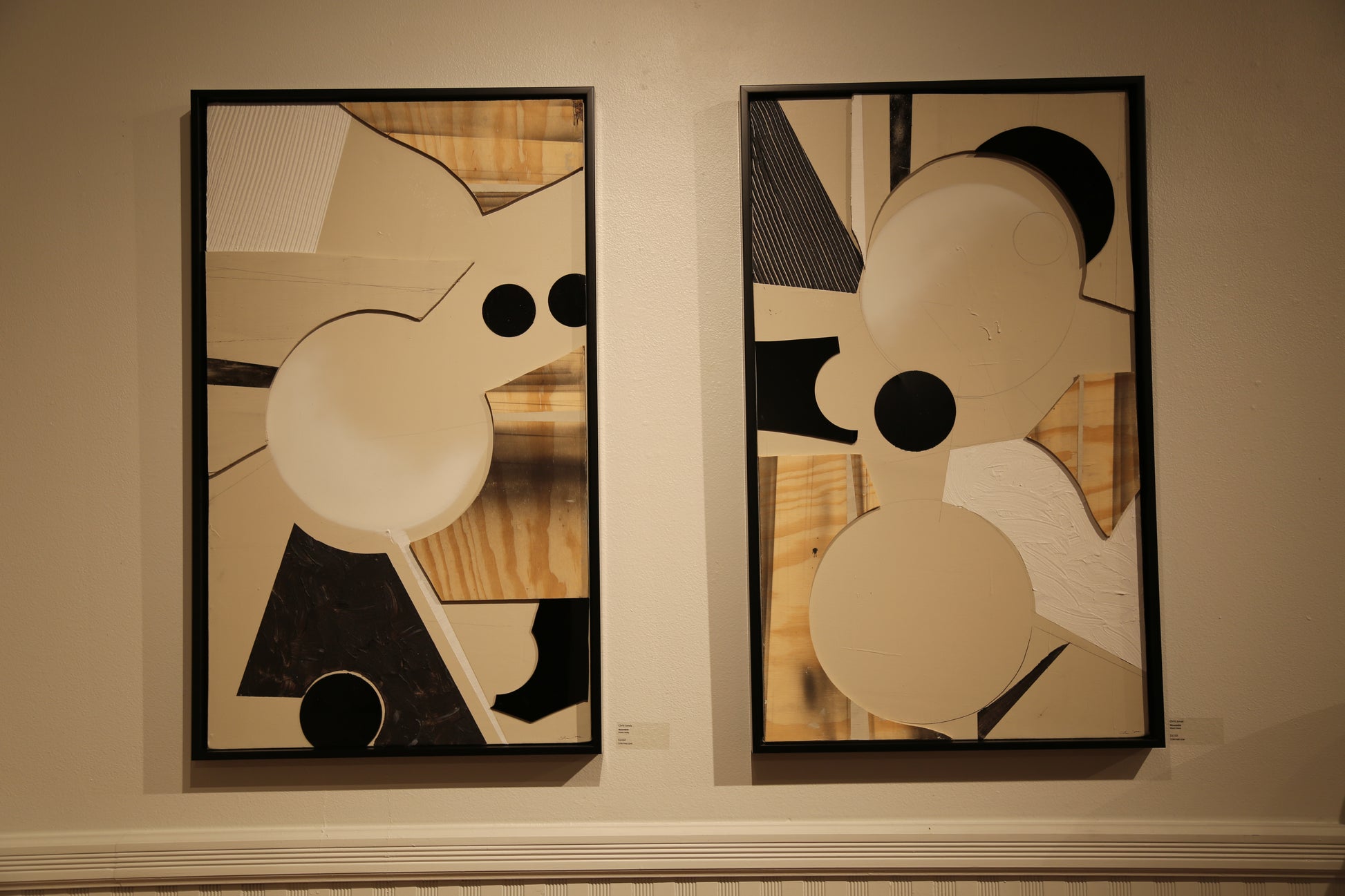Architects of Balance is a striking diptych exploring structure, rhythm, and harmony through geometry and texture. The layered neutrals — from warm wood grains to crisp black and cream shapes — evoke the dialogue between architecture and abstraction. Each panel mirrors and contrasts the other, creating a visual conversation that feels both grounded and fluid.