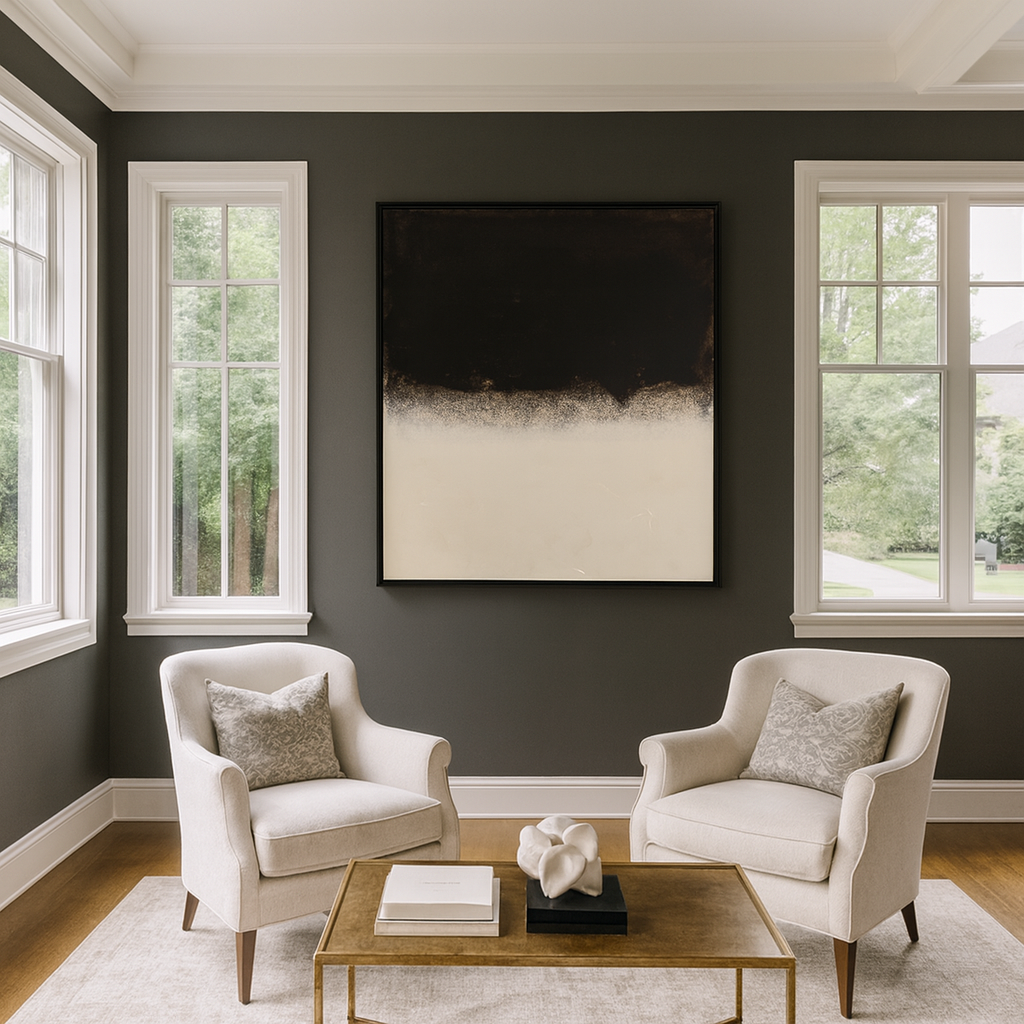 Threshold of Stillness captures the delicate balance between light and shadow — a quiet meeting point where contrast becomes harmony. The deep, textured black evokes introspection and depth, while the soft, luminous white below suggests serenity and clarity. Together, they form an abstract landscape of emotional equilibrium, inviting the viewer to pause between chaos and calm.
