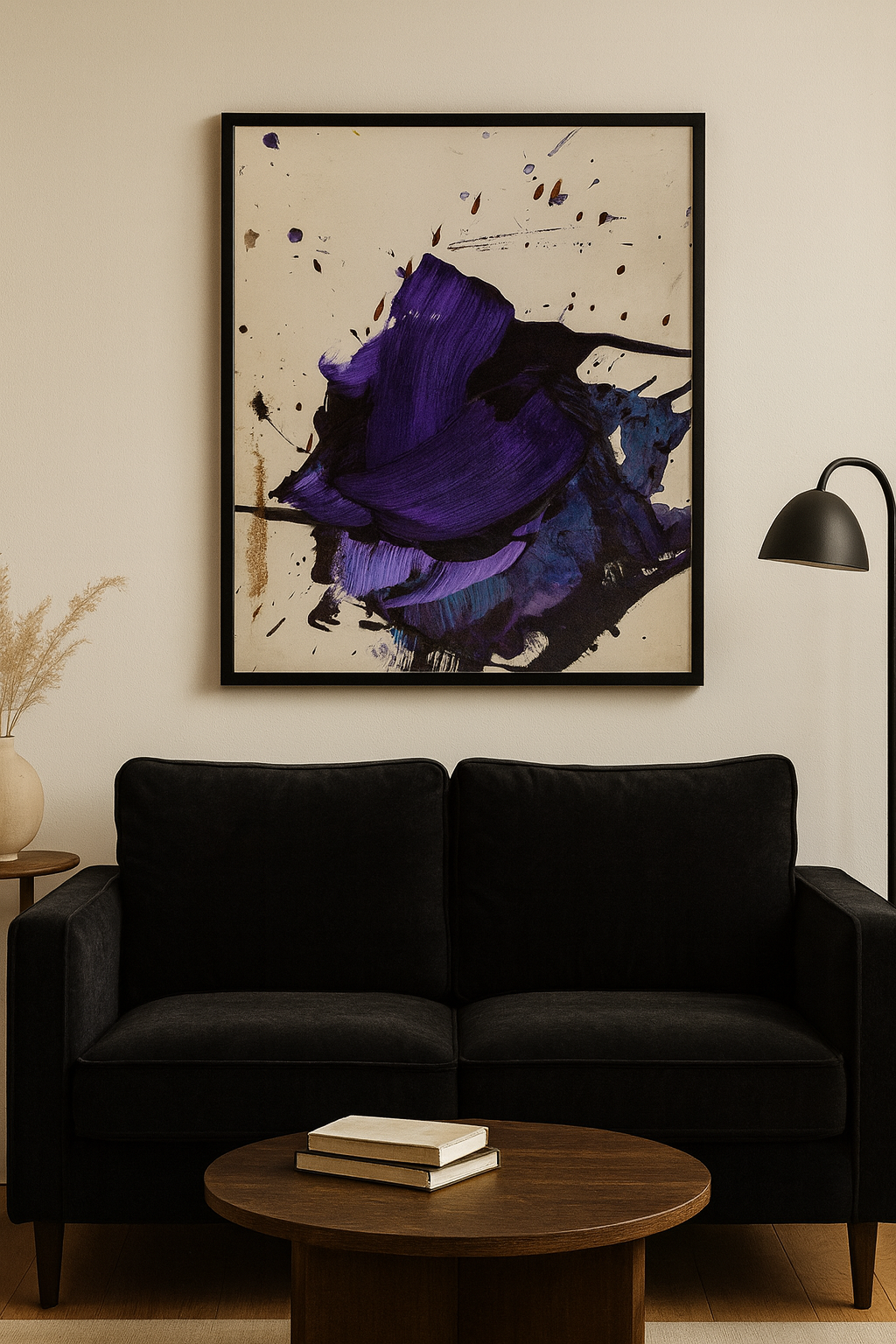 A powerful interplay of shadow and illumination, Eclipse Bloom captures the moment where darkness transforms into beauty. Deep indigo and violet strokes unfold like petals emerging from the void, suggesting both mystery and rebirth. The bold, gestural energy evokes cosmic movement — a bloom born from eclipse — where creation and concealment coexist in quiet harmony.